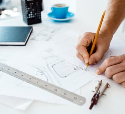 お客様の空間をつくりあげるために、ご希望のイメージをもとにラフイメージを起こしながら、図面や3D、試作検証を通して少しづつ具体化していきます。