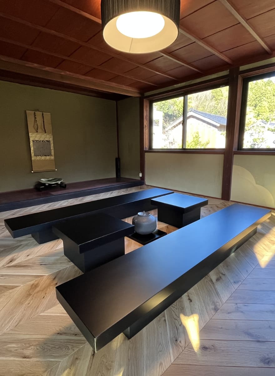 ジャパニーズモダンな和洋の部屋にも合うような茶卓をデザインしました。お茶はもちろんコーヒーによる団欒も。